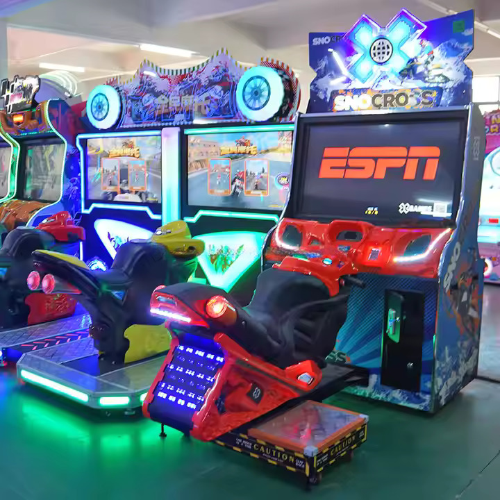 Experience the thrill of winter racing with Dreamland's Snowcross Arcade Machine!​​ This ​​5D motion simulator​​ delivers ​​realistic snowmobile action​​ with dynamic seat tilting, vibration feedback, and ​​high-definition Arctic landscapes​​. Featuring ​​authentic handlebar controls​​ and ​​competing snow tracks​​, it's perfect for ​​resorts, arcades, and family entertainment centers​​. The ​​coin-operated system​​ ensures steady revenue, while the ​​rugged construction​​ withstands heavy commercial use. With ​​multiplayer competition mode​​ and ​​immersive environmental effects​​, it's the ultimate ​​winter sports attraction​​ for all ages. ​​Easy to maintain​​ and designed for high-traffic venues – bring the excitement of snowcross racing indoors!